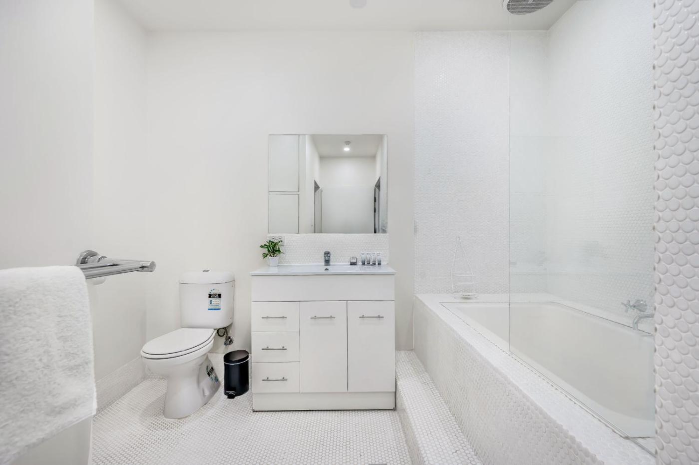 Four-Bedroom Apartment. This spacious apartment consists of 1 living room, 4 separate bedrooms and 2 bathrooms with a bath and free toiletries. Guests can make meals in the kitchen that is equipped with a stovetop, a refrigerator, a dishwasher and kitchenware. This apartment is air-conditioned and features a seating area with a flat-screen TV, a washing machine, a dining area, a wardrobe, as well as an electric kettle. The unit offers 5 beds.