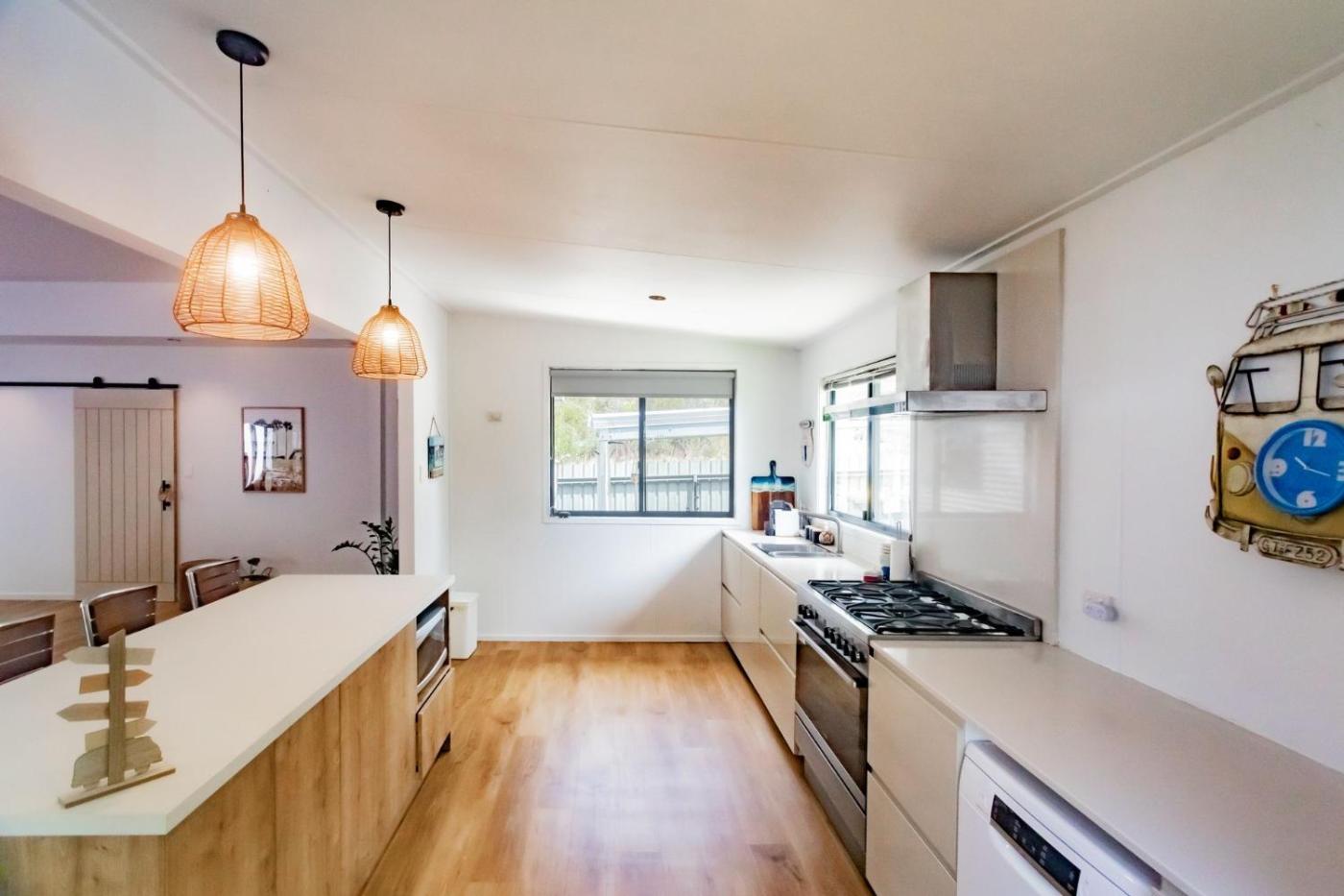 Two-Bedroom House. The air-conditioned holiday home has 2 bedrooms, 2 bathrooms, a kitchen and a seating area. Guests will find a refrigerator, a dishwasher, an oven and a toaster in the fully equipped kitchen. The holiday home also includes a barbecue. Boasting a patio, this holiday home also features a washing machine, a tea and coffee maker and a TV. The unit has 2 beds.