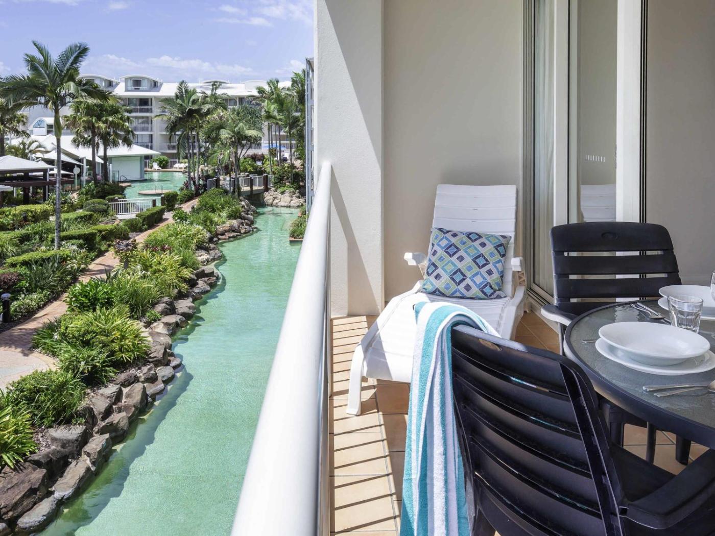 The property offers a 130 meter long lagoon Pool with waterslides and water falls, a swimming pool and 2 heated spas,surrounded by tropical gardensguests can relax.