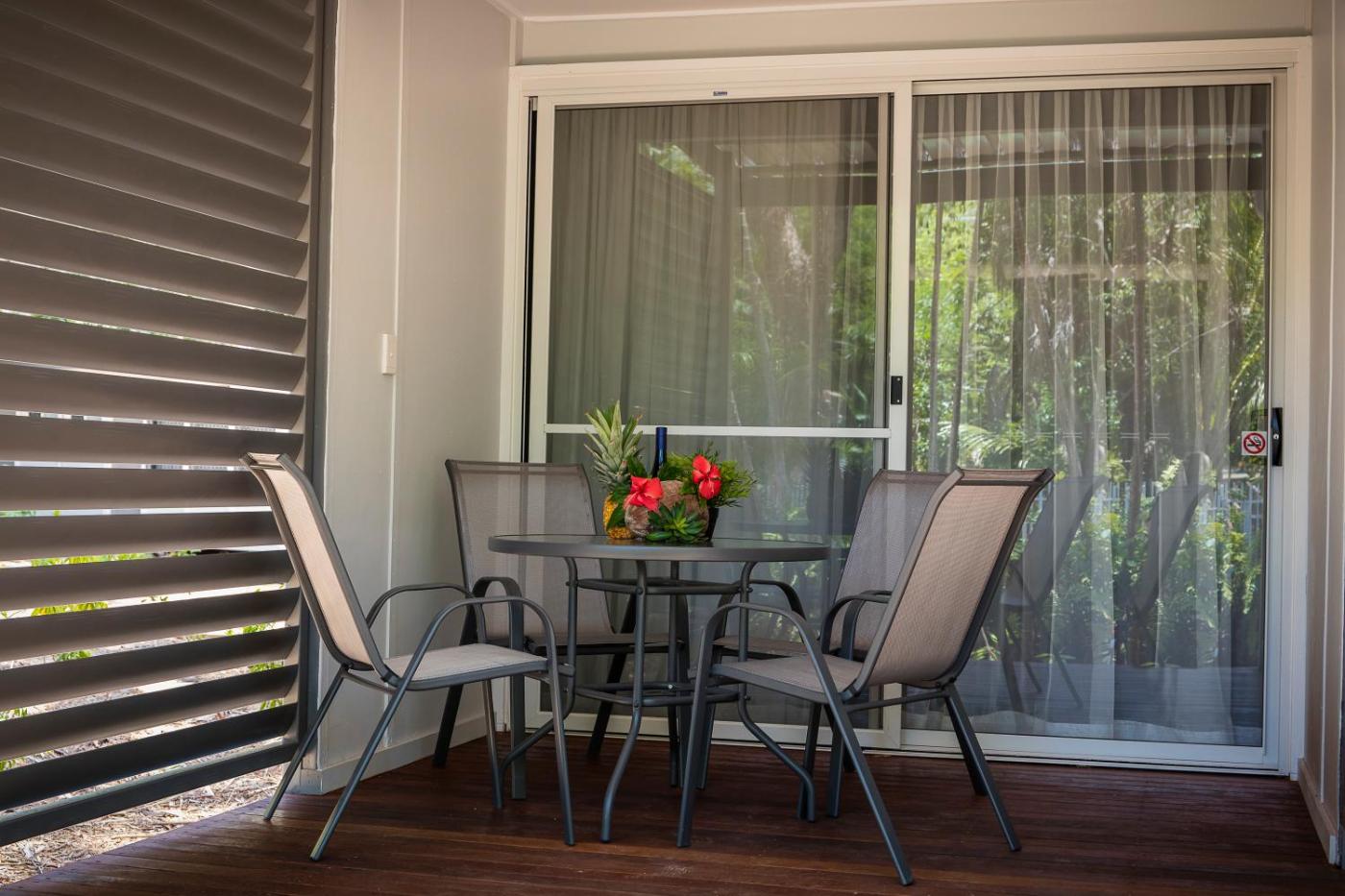Superior Chalet (Unit 4). Boasting a private entrance, this air-conditioned chalet features 1 living room, 1 separate bedroom and 1 bathroom with a shower and a hairdryer. Guests can make meals in the kitchen that has a stovetop, a refrigerator, a dishwasher and kitchenware. Featuring a balcony with garden views, this chalet also features a seating area and a flat-screen TV. The unit has 2 beds. ;
