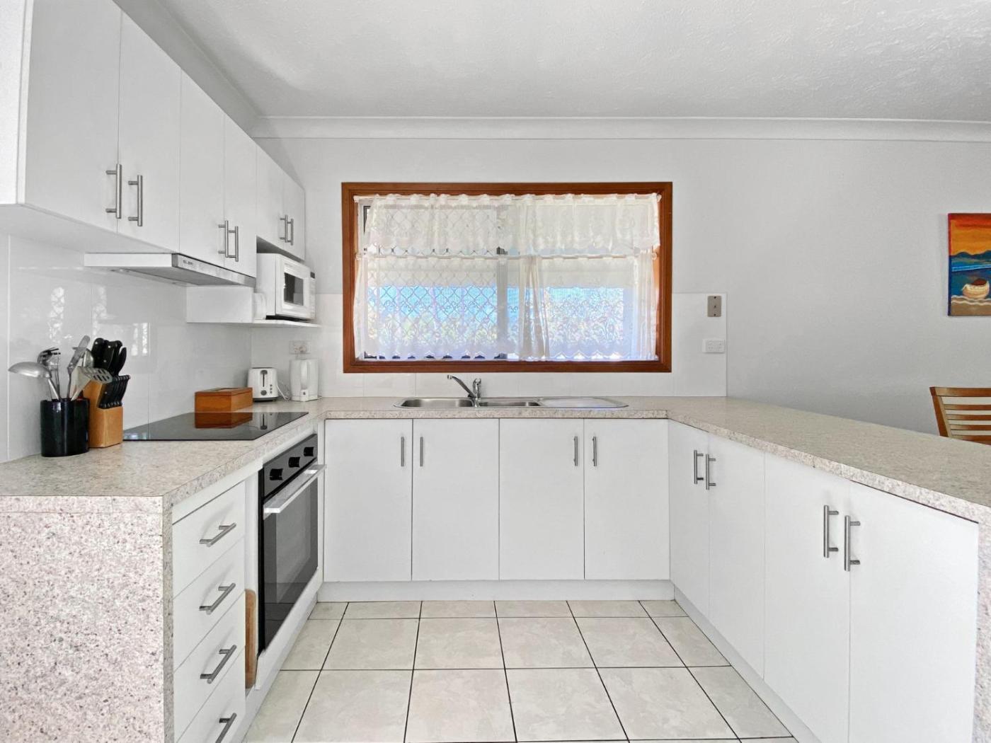 Two-Bedroom Townhouse. The air-conditioned holiday home features 2 bedrooms, 1 bathroom with a shower and a kitchen. Guests will find a stovetop, a refrigerator, kitchenware and a microwave in the well-equipped kitchen. The holiday home also has a barbecue. Featuring a balcony with garden views, this holiday home also offers a washing machine and a TV. The unit offers 3 beds.