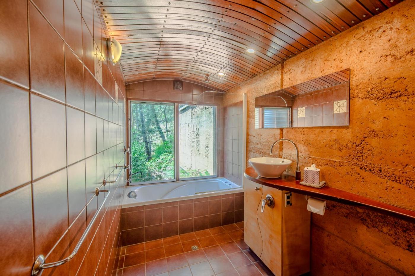 Queen Room with Spa Bath. This double room offers a fireplace. The double room includes a private bathroom equipped with a bath, a shower and a hairdryer. Guests will find a stovetop, a refrigerator, kitchenware and a microwave in the well-equipped kitchenette. The double room also provides guests with a barbecue. The spacious air-conditioned double room provides a flat-screen TV with streaming services, a tea and coffee maker, a seating area, a dining area as well as mountain views. The unit offers 1 bed. ;