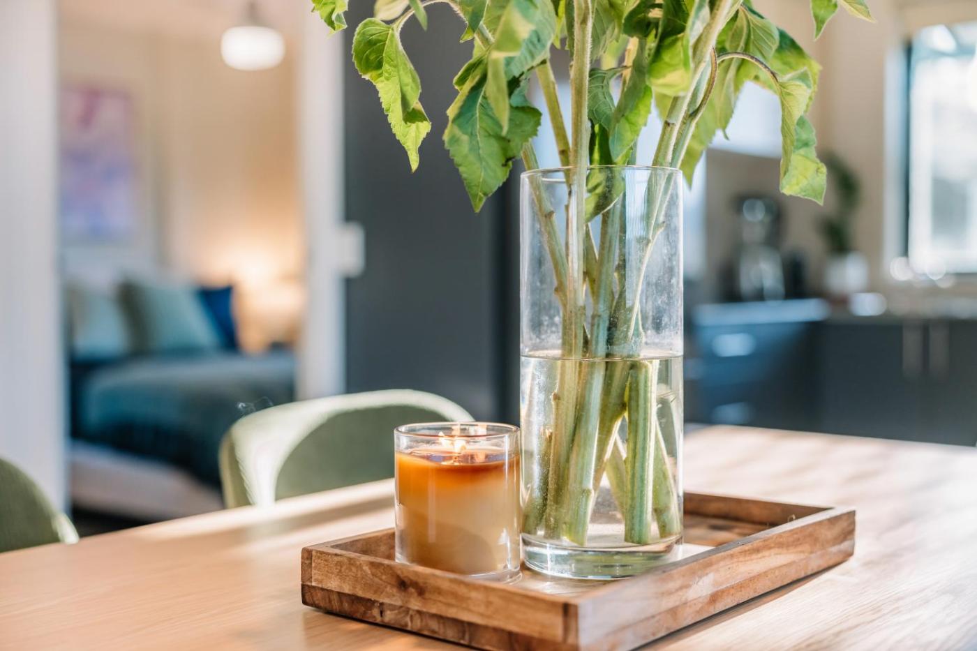 Shared stationery such as printed menus, magazines, pens, and paper removed