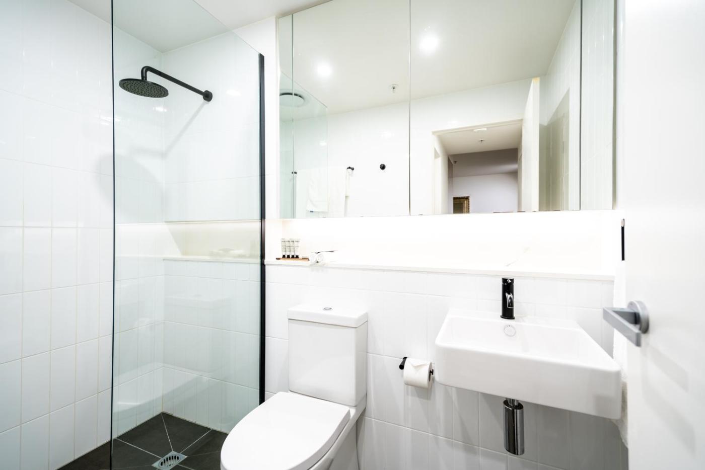 Two-Bedroom Executive Apartment with Balcony and City Views. This apartment has a balcony, toaster and seating area. An ashtray is provided and smoking is only permitted on the balcony - with doors closed. ;