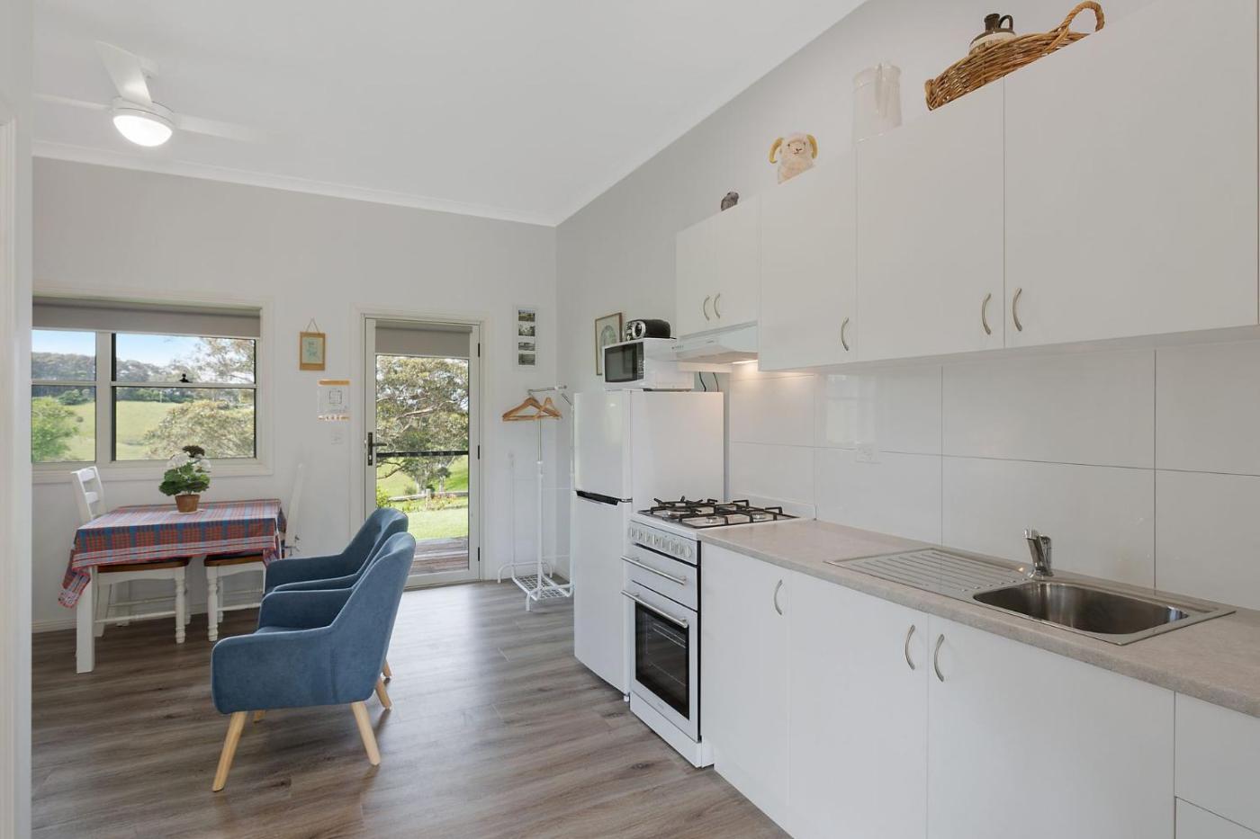 The farm stay has 1 bedroom, a TV, a fully equipped kitchen with an oven and a microwave, a washing machine, and 1 bathroom with a shower. The property has an outdoor dining area.
