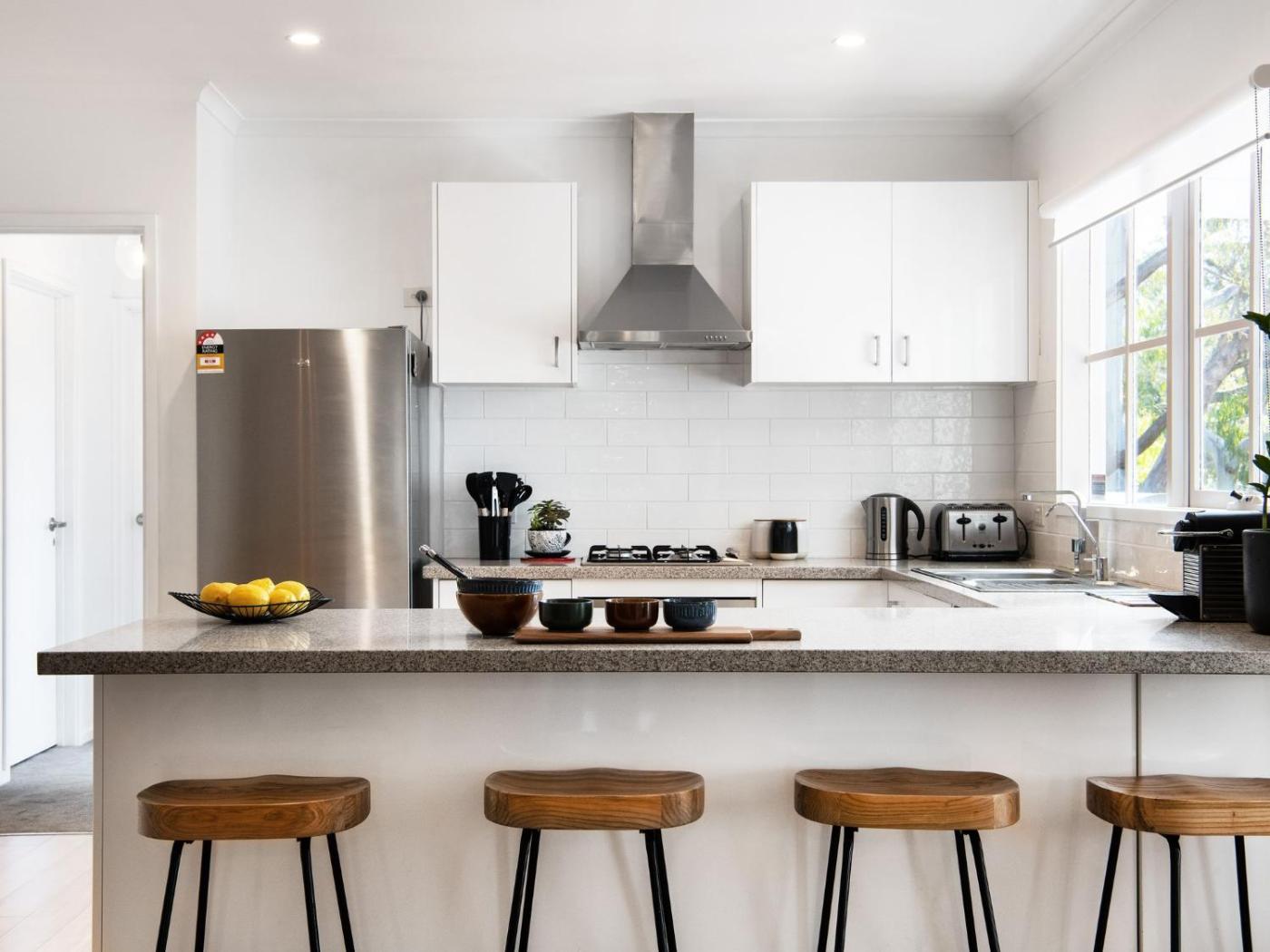 Three-Bedroom House. Guests will have a special experience as this holiday home offers a spa bath and a fireplace. The air-conditioned holiday home features 3 bedrooms, 2 bathrooms and a kitchen. The holiday homes kitchen is available for cooking and storing food. This holiday home has a washing machine, a tea and coffee maker, a flat-screen TV and an outdoor dining area. The unit offers 3 beds.