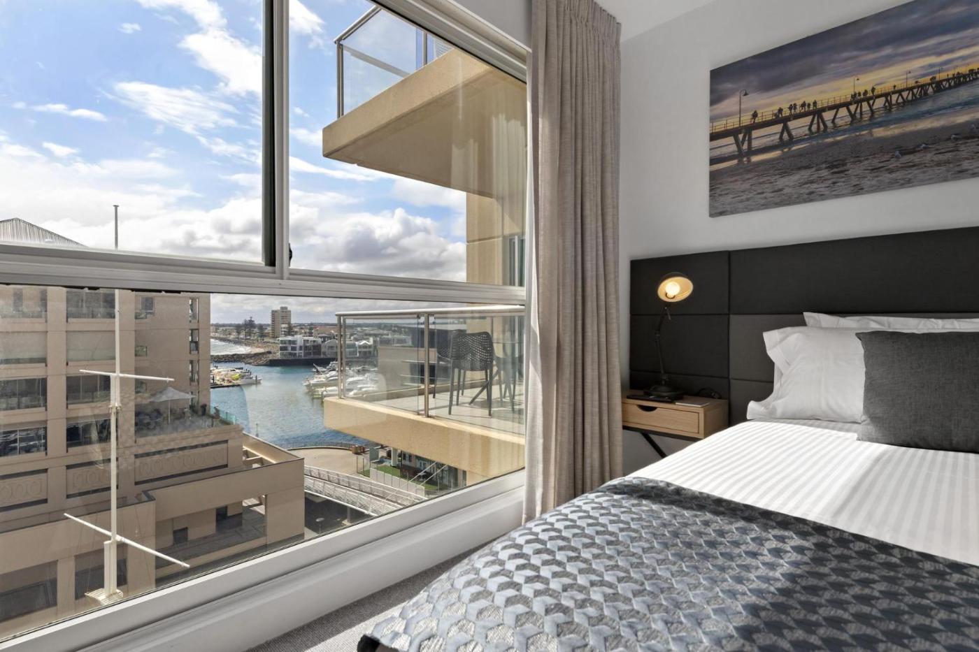 Offering a bar and sea view, Belle Escapes - Wine Down at The Pier is situated in Glenelg, a few steps from Glenelg Beach and 200 metres from The Beachouse. This beachfront property offers access to a balcony, free private parking and free WiFi. The apartment has an indoor pool, sauna and a lift.