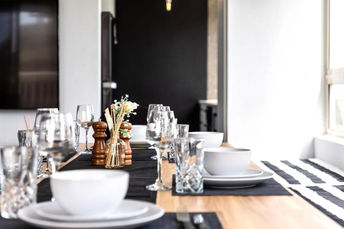 The spacious apartment has 2 bedrooms, a TV with cable channels, a fully equipped kitchen with a dishwasher and an oven, a washing machine, and 2 bathrooms with a bath. Towels and bed linen are offered in the apartment. The accommodation is non-smoking.