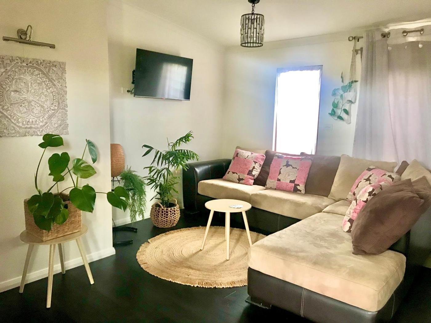 Two-Bedroom House. Boasting a private entrance, this air-conditioned holiday home includes 1 living room, 2 separate bedrooms and 1 bathroom with a walk-in shower. Guests will find a stovetop, a refrigerator, a dishwasher and kitchenware in the fully equipped kitchen. The holiday home also features a barbecue. The holiday home offers a flat-screen TV with streaming services, a washing machine, a tea and coffee maker, a seating area as well as garden views. The unit has 3 beds.