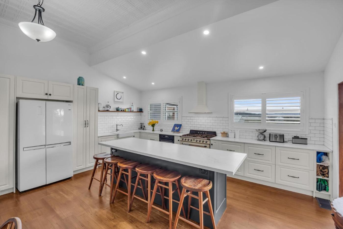 Three-Bedroom House. The fireplace is the standout feature of this holiday home. The air-conditioned holiday home has 3 bedrooms and 1 bathroom with a shower. Boasting a balcony with sea views, this holiday home also features a washing machine and a flat-screen TV. The unit has 4 beds.