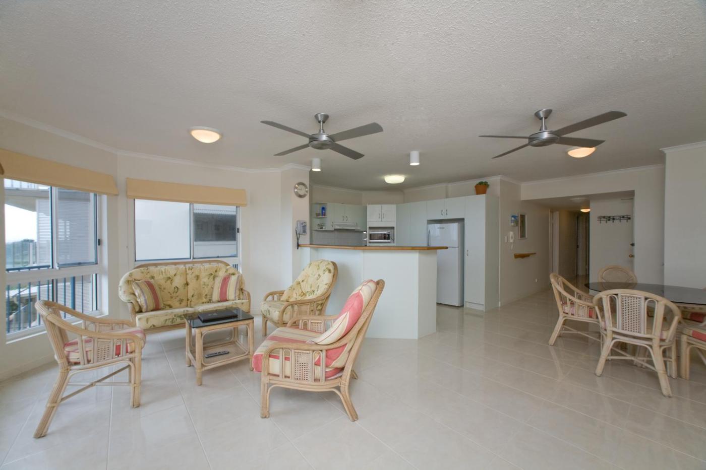Two-Bedroom Apartment. This spacious apartment offers beach views from the private balcony. There is a fully equipped kitchen, laundry and a spacious lounge area with a flat-screen TV and DVD player.