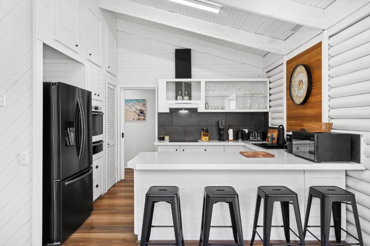 Four-Bedroom House. The fireplace is the standout feature of this holiday home. Boasting a private entrance, this air-conditioned holiday home comes with 4 bedrooms and 2 bathrooms with a bath or a shower. Meals can be prepared in the well-fitted kitchen, which features a stovetop, a refrigerator, a dishwasher and kitchenware. This holiday home has a washing machine, an electric kettle, a flat-screen TV and a patio. The unit has 5 beds.
