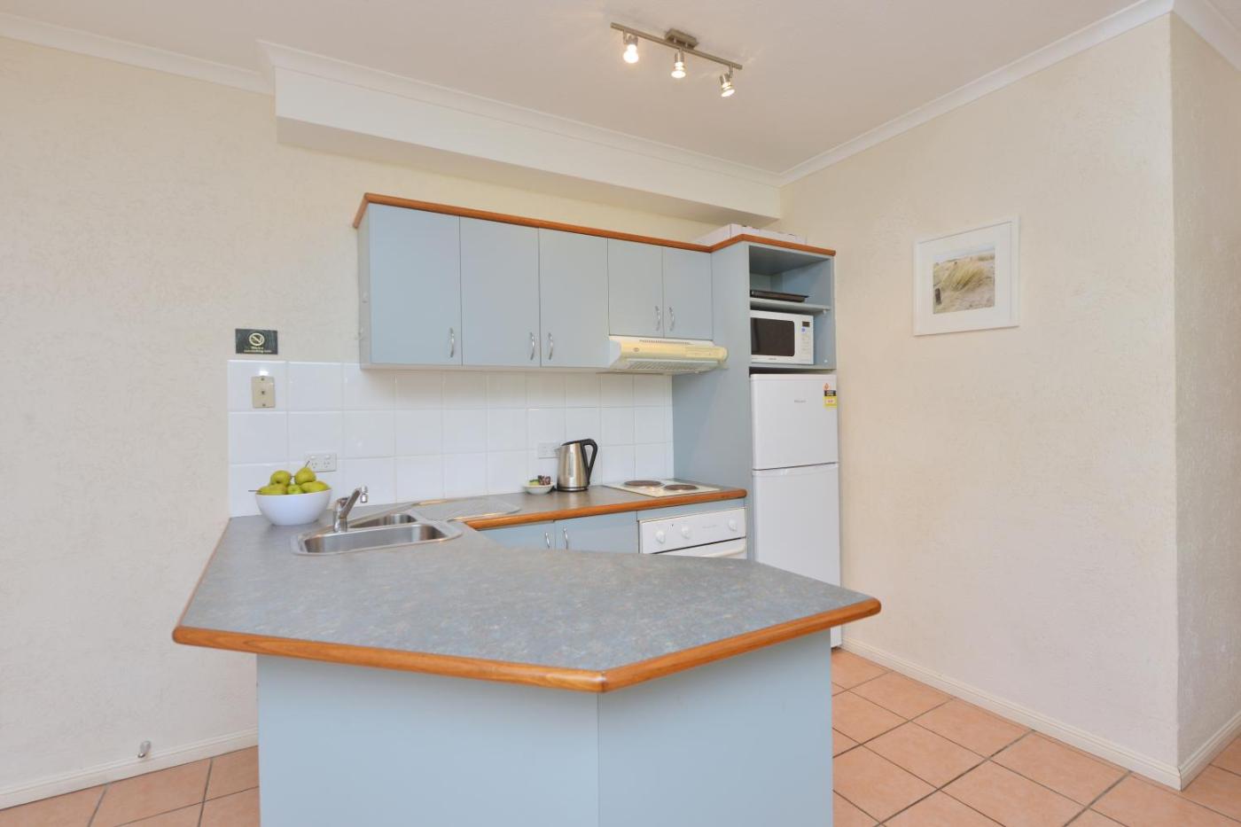 Budget One Bedroom Apartment. This spacious apartment features full kitchen facilities with a microwave and a stove top. It offers a private balcony overlooking the tropical gardens. Air-conditioned throughout, there are both indoor and outdoor dining areas. Access to free, shared laundry facilities is provided. ;