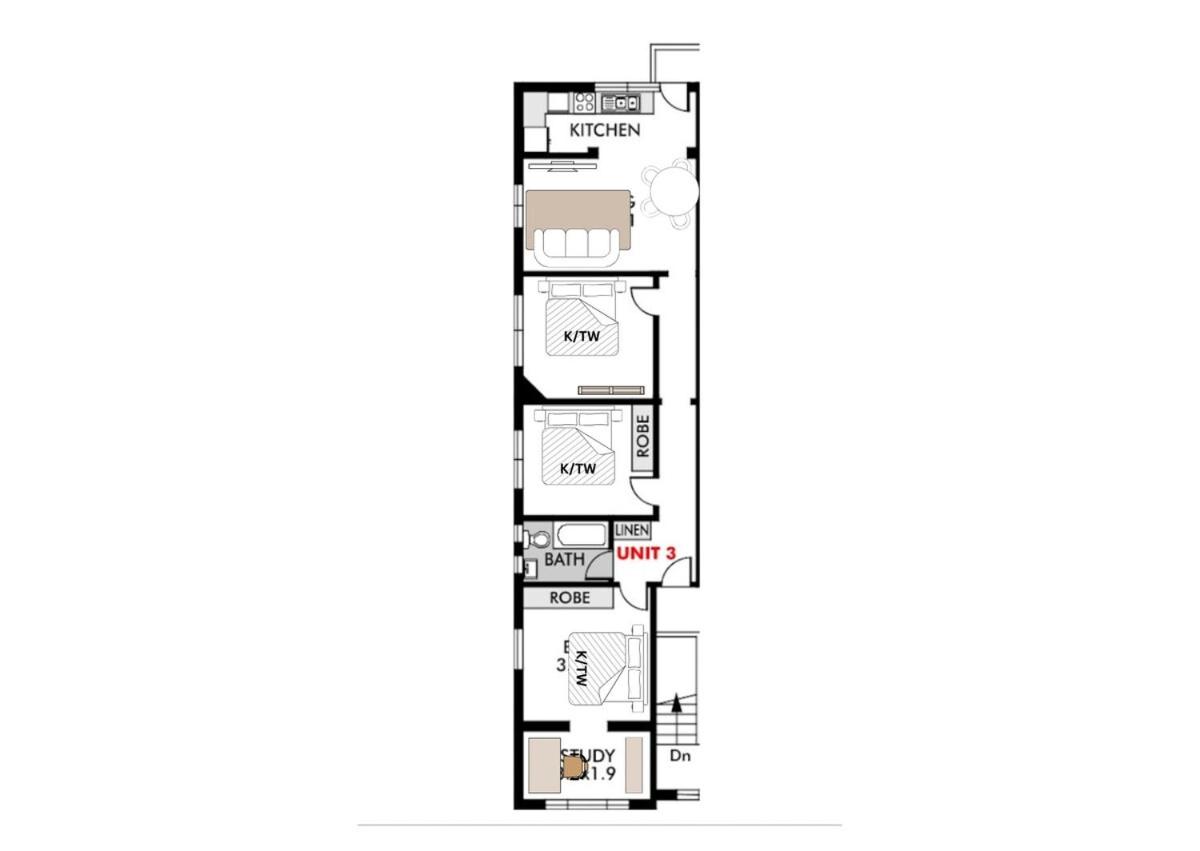 Three-Bedroom Apartment Suite. This spacious apartment comprises 1 living room, 3 separate bedrooms and 1 bathroom with a bath and free toiletries. Guests can make meals in the kitchen that is equipped with a stovetop, a refrigerator, kitchenware and an oven. The apartment provides a washing machine, a private entrance, a tea and coffee maker, a dining area, as well as a flat-screen TV. The unit offers 3 beds.