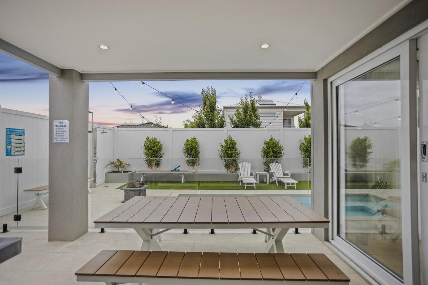 Boasting air-conditioned accommodation with a private pool, pool view and a balcony, Hamptons in Torquay - 5 bath, Pool, Spa & Theatre! isin Torquay. This property offers access to a terrace, table tennis, free private parking and free WiFi. The property is non-smoking and is situated 2.2 km from Fishermans beach.