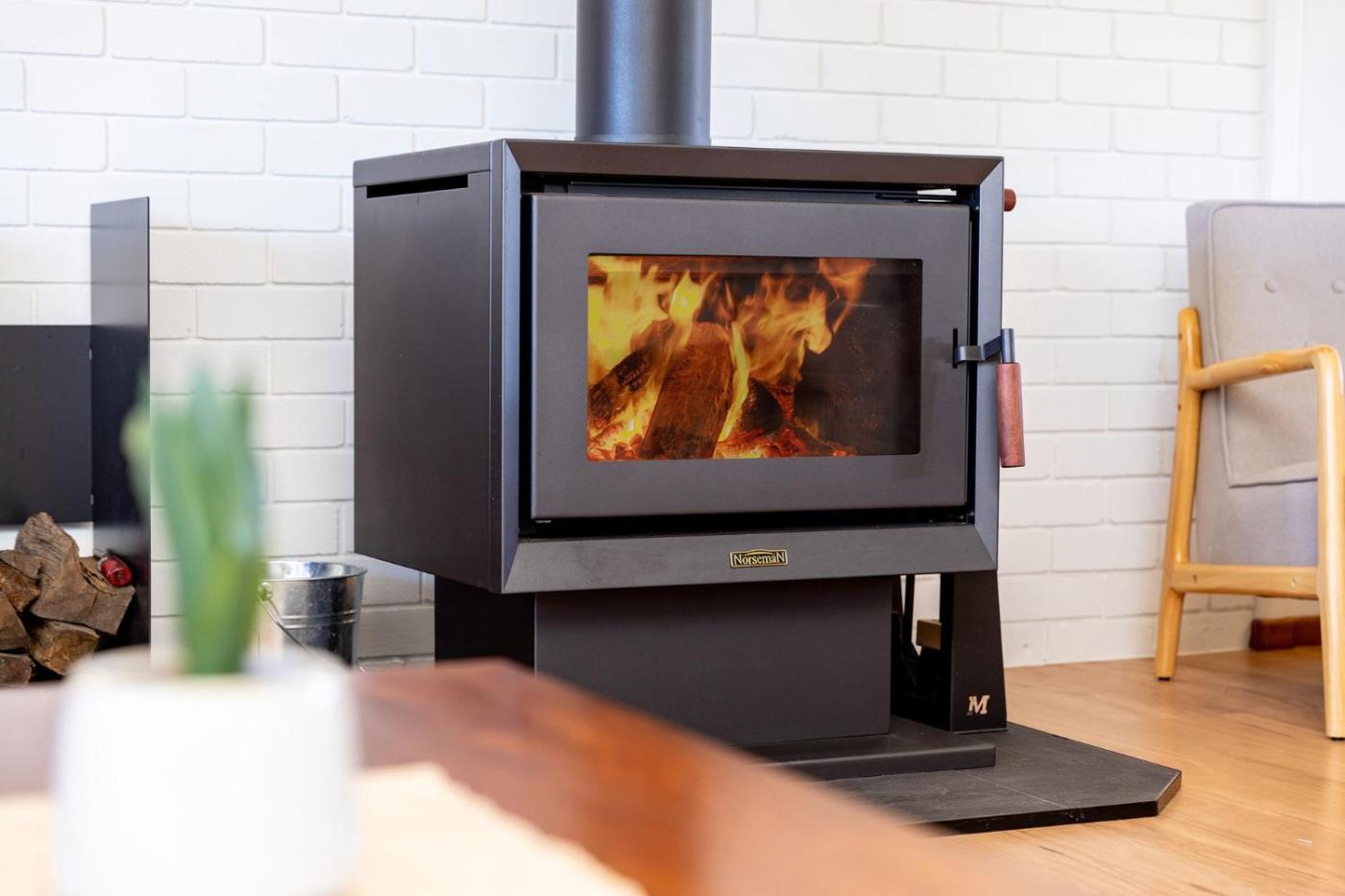 Three-Bedroom House. The fireplace is the standout feature of this holiday home. The air-conditioned holiday home has 3 bedrooms and 1 bathroom with a bath and a hairdryer. Guests will find a stovetop, a refrigerator, a dishwasher and kitchenware in the fully equipped kitchen. The holiday home also comes with a barbecue. This holiday home features a washing machine, a coffee machine, a TV with streaming services and a patio. The unit has 4 beds.